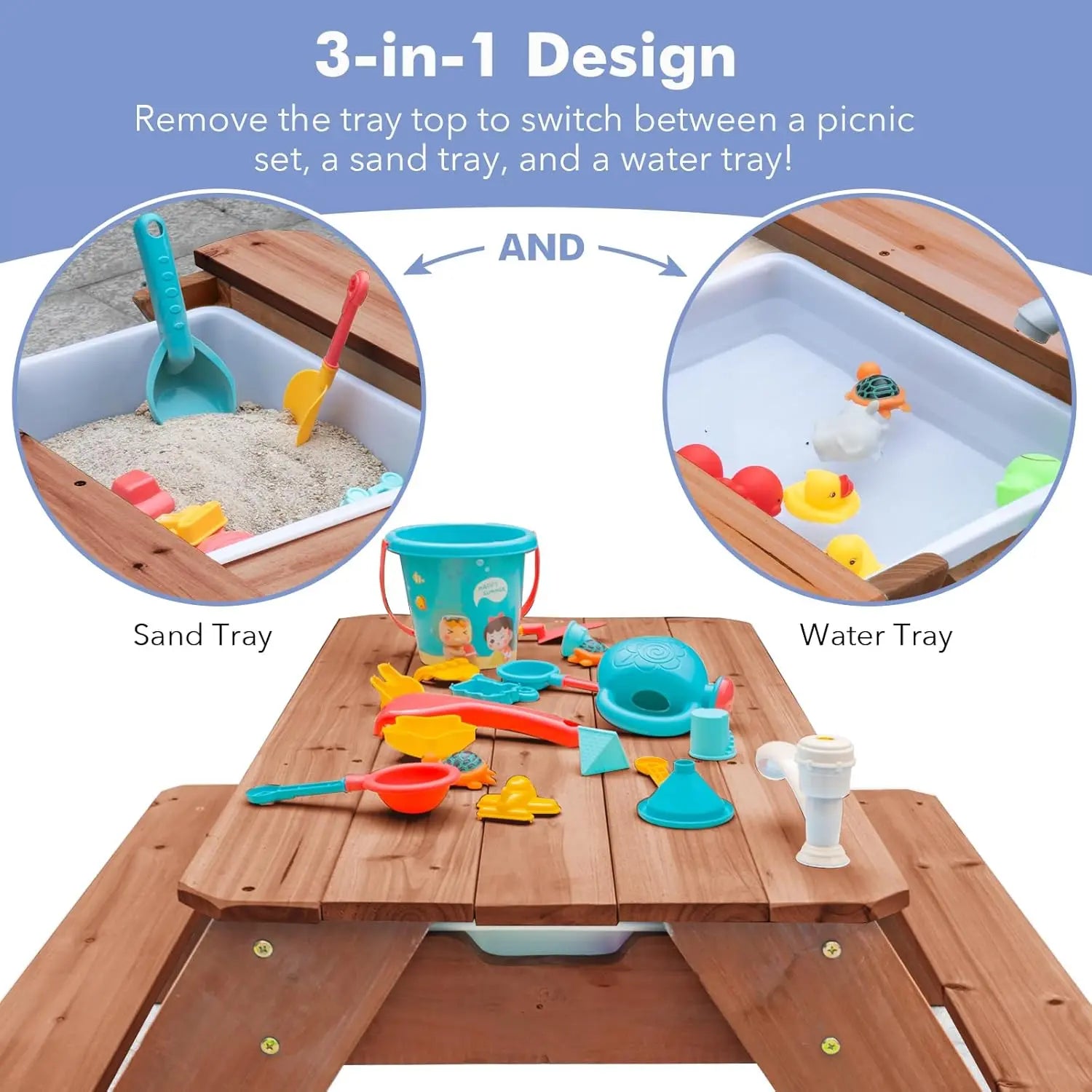 Ideal Gift for Endless Fun: Provide children with a joyful and enriching childhood experience with this versatile picnic table. Whether it's water games, building sandcastles, or enjoying outdoor meals and conversations, this table is sure to bring hours of entertainment.